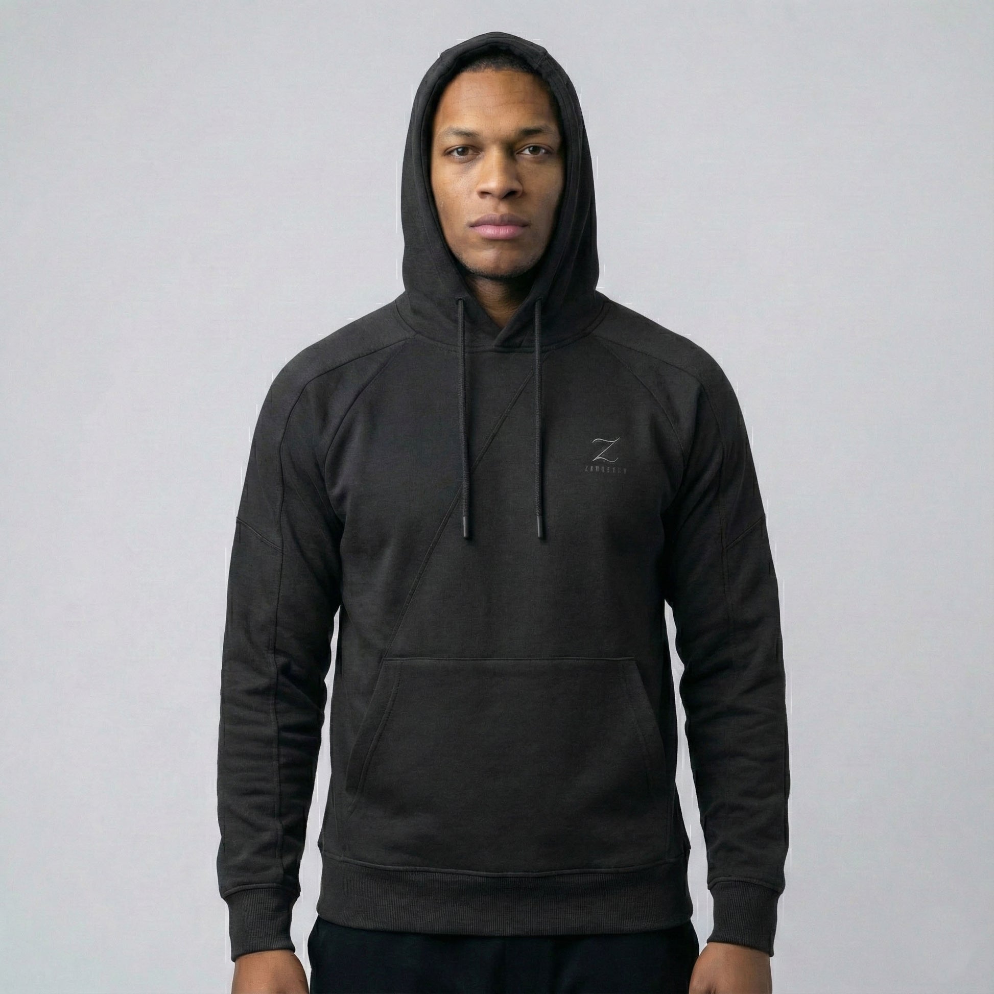 Hidden Tech Pocket: Inside the main kangaroo pocket, you'll find a concealed reverse coil zipped media pocket sized to securely hold a large smartphone.